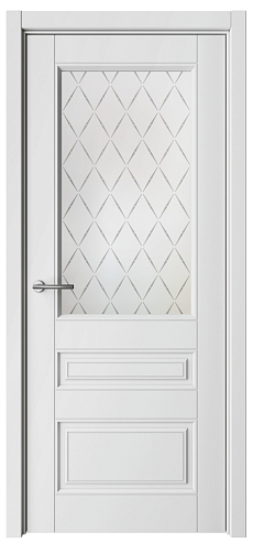 Дверь Классика-3 ширина 90 см Белый Эмаль Стекло мателюкс "Лорд матовое" кромка В цвет полотна в Пензе