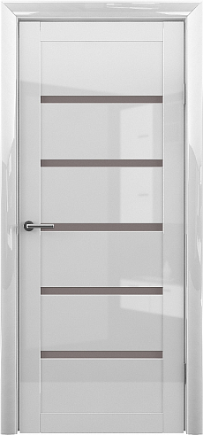 Дверь Вена ширина 90 см Белый глянец Глянец Стекло мателюкс бронза с замком в Пензе